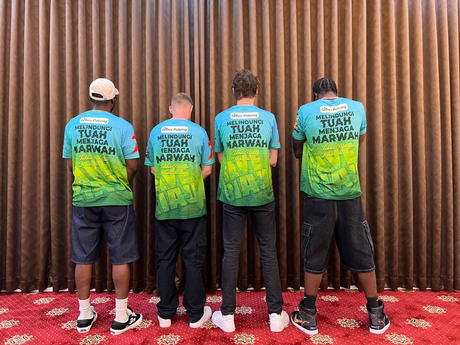 Saat bersiap tampil, Melly Mike dan timnya mengenakan kaus biru muda-hijau bergambar gajah Sumatera dengan tulisan mencolok : “SAVE TESSO NILO”. Tampilan ini jadi simbol nyata dukungan terhadap gerakan penyelamatan Taman Nasional Tesso Nilo, diinisiasi oleh Polda Riau sebagai bagian dari program Green Policing. Ia pun lantang menyuarakan: